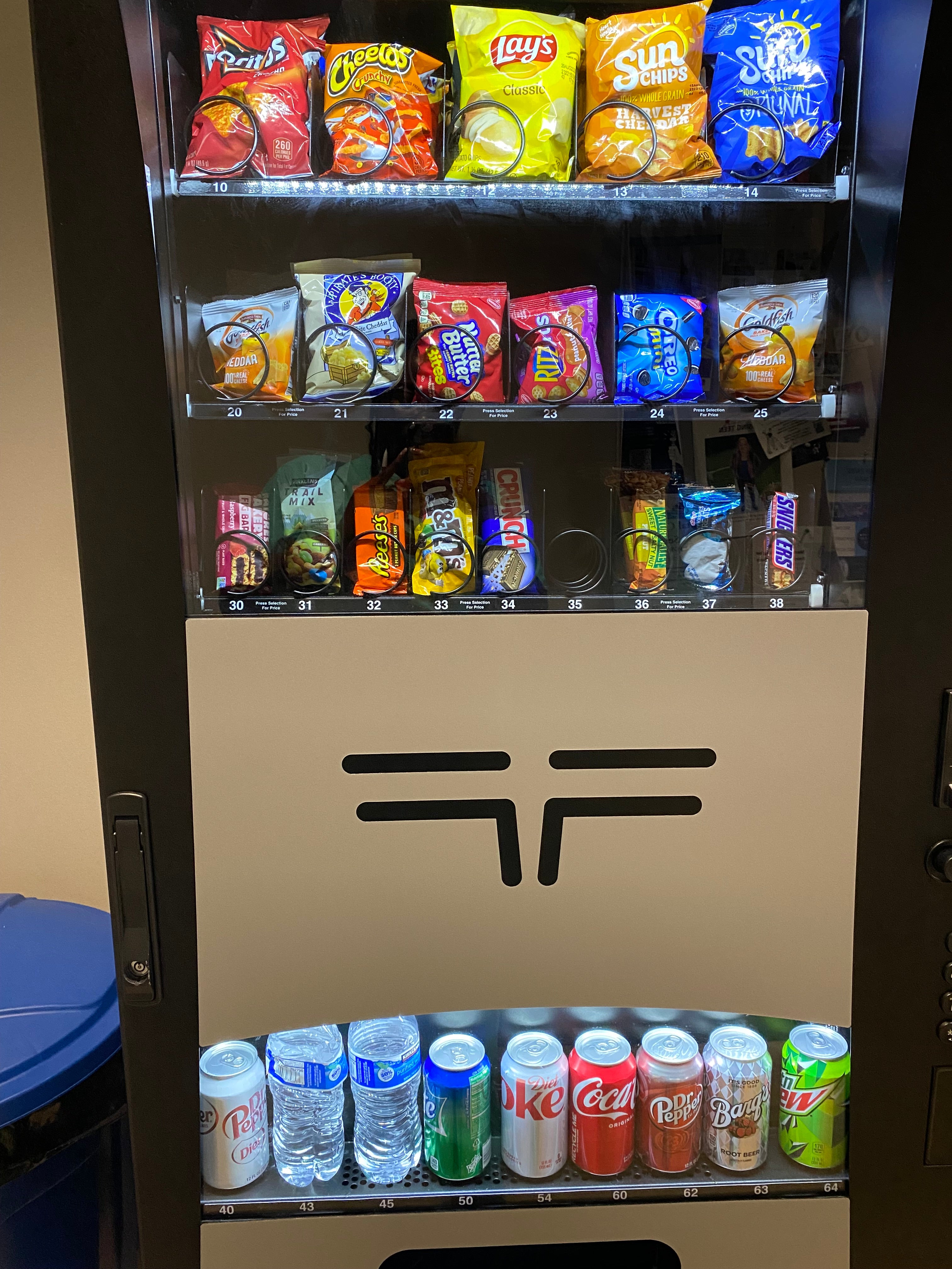 - Free Vending machine w/ convenient card readers and No Touch Payment Options (based on Vending Usage card readers will be added)